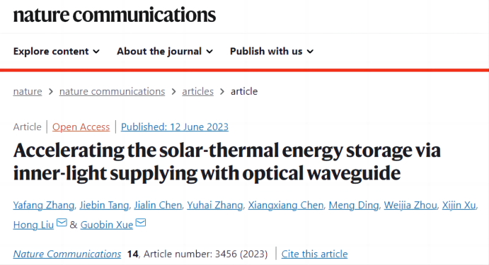 我院教师张亚芳、薛国斌等人在光波导内通光加速太阳能相变蓄热研究方面取得进展,相关成果“Accelerating the solar-thermal energy storage via inner-light supplying with optical waveguide”发表在6月份的nature communications杂志上,青年教师张亚芳博士为第一作者,薛国斌、刘宏教授为通讯作者,kaiyun体育网页登录入口为唯一作者单位。