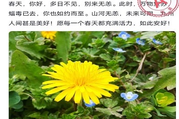 为了缓和同学们疫情带来的紧张气氛,以健康的心态迎接接下来的生活,物理学院青年志愿者协会于4月3日举办了“驱疫迎春,面向美好未来”的线上摄影作品征集活动,号召同学们走出家门,感受春的到来。