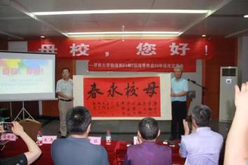 校友代表刘志林深情回顾了在学校求学期间的点点滴滴,从济大求学之路到工作奋斗之路,从恩师教导到同窗友谊,他表示,尽管毕业离开母校,但一如既往的关心关注和支持母校的发展与进步,并向kaiyun体育网页登录入口徐锡金院长赠送了由中国书协会员、山东省书协行书委员会副主任胡宗江先生书写的“母校永春”书法作品。